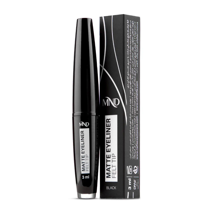 ترسیم خطوط و نقش در ناحیه دور چشم از دوران باستان برای زیبا جلوه دادن چشم بکار گرفته میشده و جز مواردی از آرایش کردن محسوب میشود که هنوز هم بسیار پرطرفدار است. خط چشم مایع MND با رنگ مشکی تولید شده که پرکاربردترین رنگ برای این دسته از محصولات است. رنگ این خط چشم بعد از خشک شدن به حالت مشکی مات درمیآید تا بتوان در هر نوع آرایشی از این محصول استفاده کرد. به دلیل اینکه این محصول در محیط بیرون از خانه هم مورد استفاده قرار میگیرد از ترکیبات آنتی اکسیدان مانند توکوفرول و ترکیبات کاهش دهنده التهاب مانند بیزابولول و آلانتوئین نیز در محصول استفاده شده تا پوست تحت تاثیر عوامل پیرامونی مانند اشعه خورشید حساس نشده و آسیب نبیند.