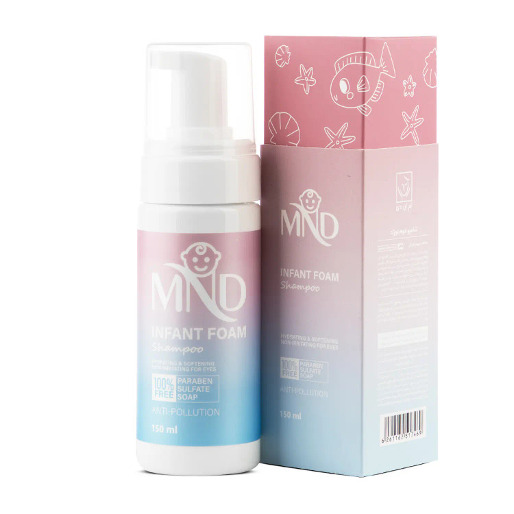 نوزاد معمولا موی کوتاه و کم پشت داشته و تقریبا میشود گفت پوست سر نوزاد کاملا در تماس با محیط پیرامون است و یک شامپو مناسب برای سر نوزاد میتواند برای شستن سایر نواحی وی هم استفاده شود. اما باید به این نکته توجه کرد که نوزاد به دلیل اینکه هنوز درکی از محیط پیرامون نداشته و متوجه کلام والدین خود نیست نمیتوان انتظار داشت تا در زمان شستشوی پوست او حرکت نکرده و جابجا نشود. بنابراین نمیتوان بهراحتی از محصولات شوینده با آبکشی متداول برای تمیزکردن نوزاد استفاده کرد چون احتمال ورود شامپو به چشم و دهان و نارحت شدن نوزاد وجود دارد. بهترین گزینه برای نوزاد استفاده از شویندههای فومی است که به دلیل فوم بودن، جاری شوندگی کمی داشته و این امکان را به والدین میدهند تا با اطمینان بیشتری سر و بدن نوزاد را بشویند بدون اینکه نگران ورود ترکیبات پاککننده به چشم و دهان جگرگوشه خود باشند. شامپوهای فومی بهراحتی مو، کف سر و بدن نوزاد را که جسم کوچکی هم دارد شسته و بدون ناراحت کردن او میتواند موجب تمیز شدن نوزاد شود. شامپو فوم نوزاد MND با داشتن ترکیبات پاککننده بسیار ملایم و نداشتن سولفات و صابون بهترین گزینه برای این امر است. همچنین به دلیل بهرهبری از گلیسرین، دکسپانتنول، سدیم پیسیای و عصاره آلوئهورا بهراحتی رطوبت پوست نوزاد را تامین میکند تا خارش و یا ناراحتی در پوست به وجود نیاید. در این شامپو از عصاره بره موم که خاصیت آنتیاکسیدانی و کاهش دهنده فعالیت باکتریها را دارد هم استفاده شده است تا پوست نوزاد که هنوز به محیط پیرامون و موجودات میکروسکوپی عادت نکرده، تحت تاثیر آنها قرار نگیرد. همچنین با توجه به اینکه پوست بدن نوزاد با سطوح مختلف پیرامون برخورد داشته و تحت تاثیر آلودگی پیرامونی مثل فلزات سنگین معلق در جو، گرد و غبار و... قرار دارد، باید از ترکیبات محافظت کننده دربرابر آلودگی همانند عصاره ریشه سرخارگل و ترکیبات کاهنده التهاب مانند نیاسینامید و آنتی اکسیدانی مثل عصاره چای سبز نیز در محصول استفاده میشد تا بهترین مراقبت از پوست نوزاد به عمل آید.